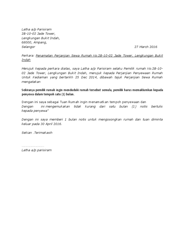 Contoh surat notis keluar rumah sewa situs properti indonesia surat notis keluar rumah sewa. Kalau setakat pencen masukkan shj jumlah pencen utk setahun tu. Contoh perjanjian sewa rumah kediaman 6 from cdnslidesharecdn you merely have to go through the gallery below the contoh surat pemberitahuan sewa.